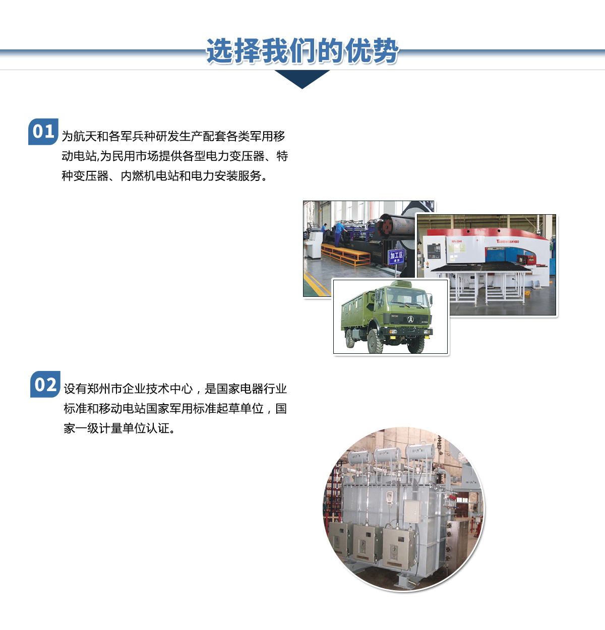 鄭州金陽(yáng)電氣有限公司是由鄭州市國(guó)資委控股的國(guó)有獨(dú)資企業(yè),是原機(jī)械工業(yè)部在上世紀(jì)五十年代投資建立的移動(dòng)電站和電力變壓器生產(chǎn)企業(yè)。公司下設(shè)電站公司和變壓器公司及其它配套公司,長(zhǎng)期以來(lái)在國(guó)內(nèi)移動(dòng)電站和電力變壓器行業(yè)占有重要位置。是河南省具備設(shè)計(jì)生產(chǎn)110kV電壓等級(jí)以上電力變壓器資質(zhì)的企業(yè),是國(guó)家經(jīng)貿(mào)委首批推薦城鄉(xiāng)電網(wǎng)建設(shè)與改造所需變壓器的生產(chǎn)企業(yè)。河南省變壓器檢測(cè)中心設(shè)在我公司。